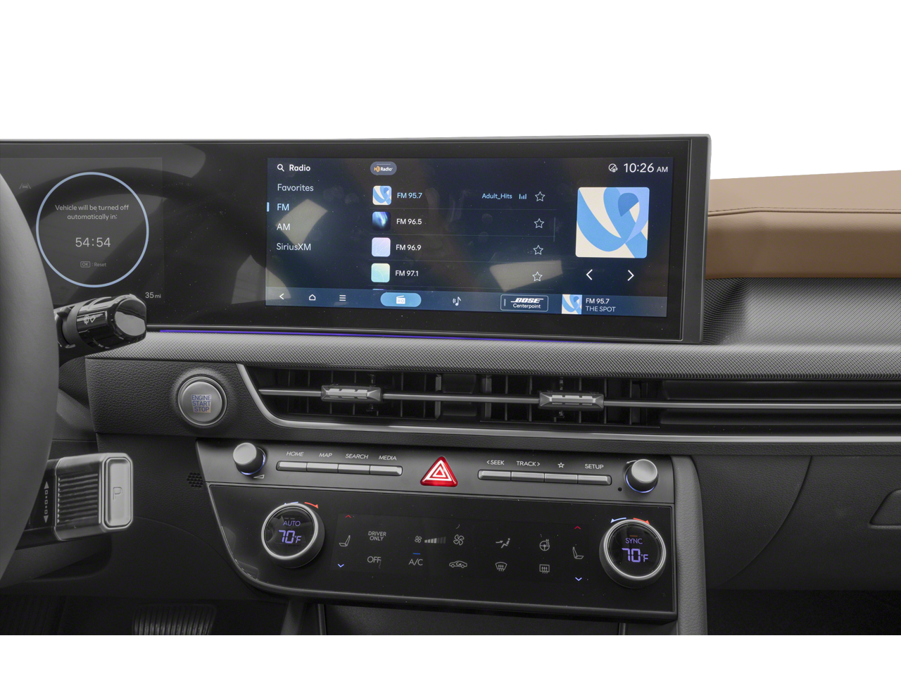 - Radio: AM/FM/HD/MP3/SiriusXM/Navigation -inc: 12.3" high-resolution touchscreen, Bose premium audio w/12 speakers (1 center channel, 2 dash, 2 front tweeters, 4 door mounted, 2 rear mounted speakers plus 1 rear mounted subwoofer), dynamic voice recognition w/Wi-Fi hotspot, smartphone integration, Bluetooth®, Over-The-Air updates, USB connectivity, Blue Link+ connected car, Android Auto/Apple CarPlay capability (wireless and wired), HERE HD traffic and diversity antenna (navigation and premium audio)